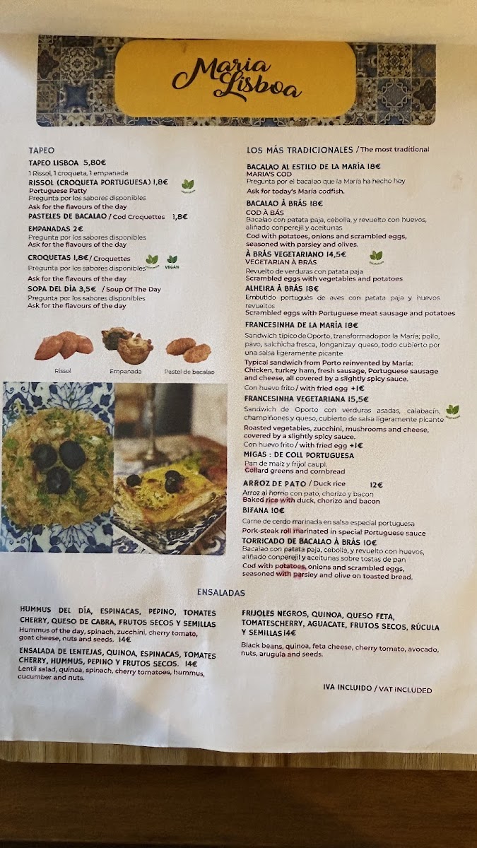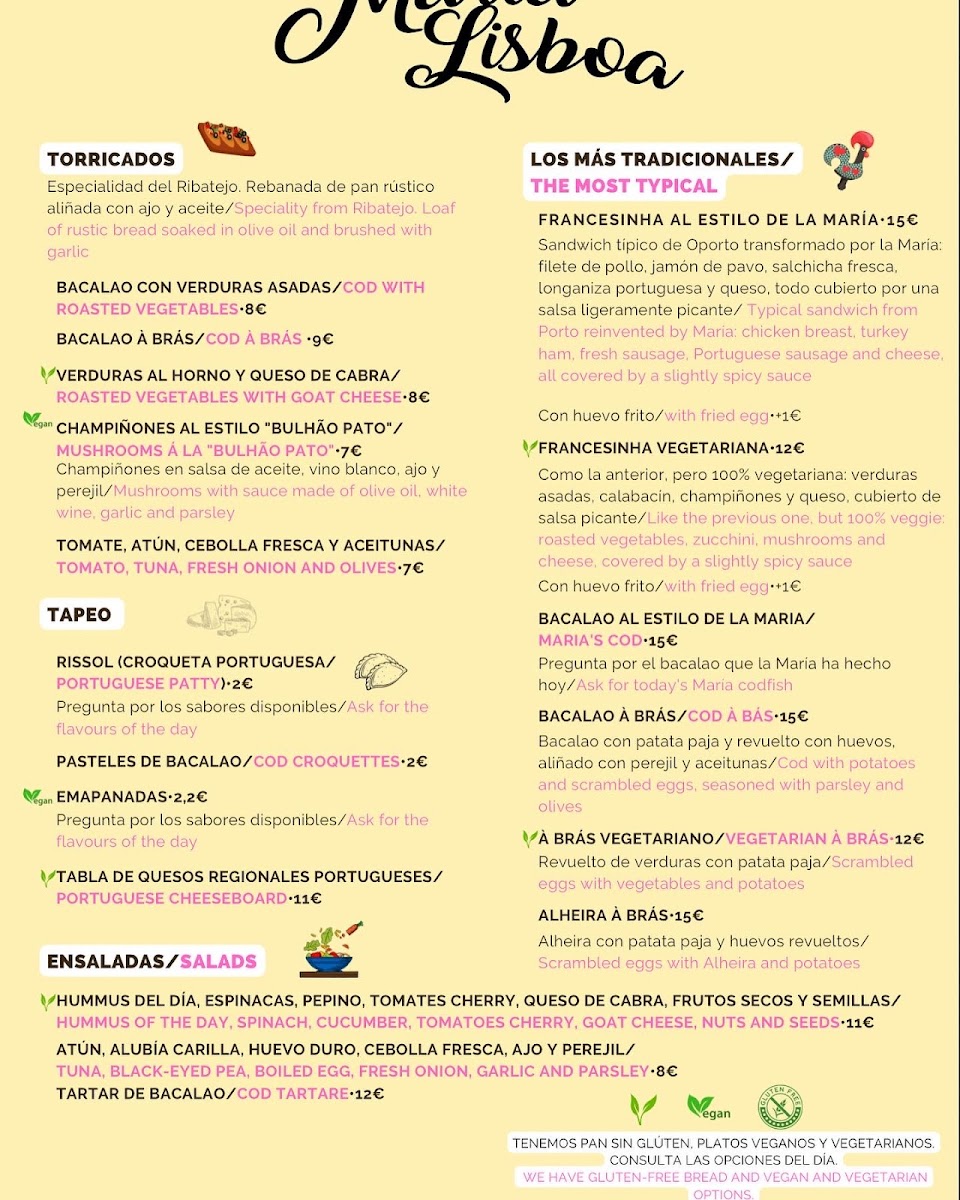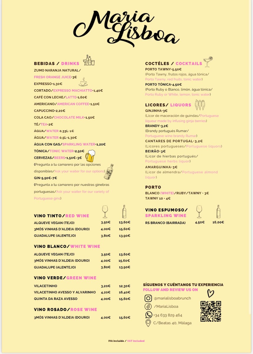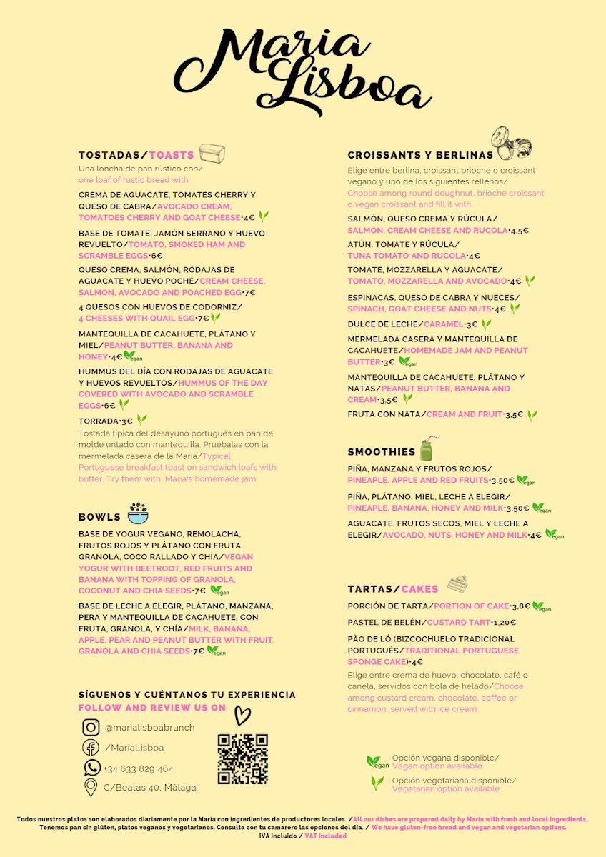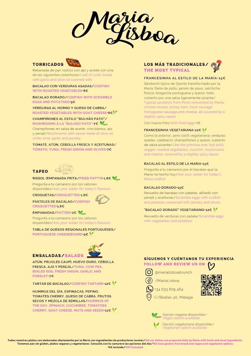 Welcome to Maria Lisboa Brunch, an authentic Portuguese retreat nestled in the heart of Fuengirola, Málaga. This charming restaurant offers a delightful menu that transports you straight to Lisbon without the need for a flight. Diners rave about the exceptional bacalhau, while the refreshing green wine perfectly complements the seafood. The chef’s personal touch shines through in every dish, from the inviting carrot soup for kids to vibrant salads and delectable pastries.